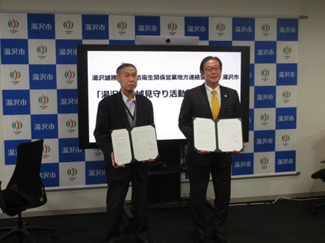 生衛組合湯沢雄勝地方連絡協議会と湯沢市との間で地域見守り活動事業に関する協定を結びました